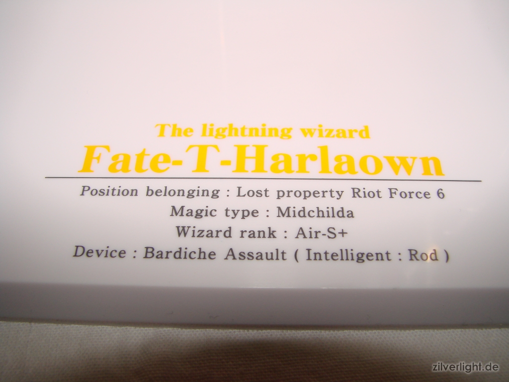 Zum Schluss natürlich wie immer die Base, welche wie bei allen Statuen der StrikerS-Reihe schlicht gehalten ist und immer jeweilige Informationen zum Charakter enthält.