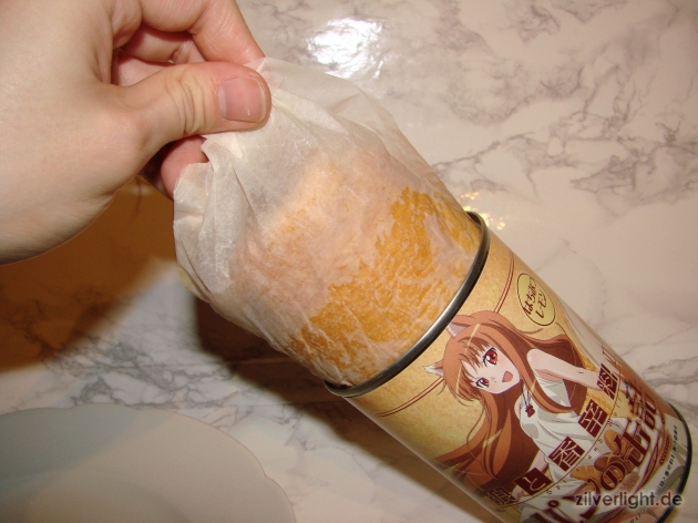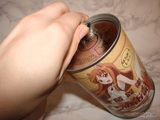 Jeder kennt Dosensuppen, Dosenwurst und was es sonst noch so alles gibt. Exakt das selbe ist hier in Brotform enthalten, somit Dosenbrot. In Japan gibt es diese Art von Anime spezifischen Dosenbroten gerne mal als spezielle Kampagne, wie z.B. damals als es eine ganze Reihe an Dosenbroten zur Serie CLANNAD gab. Diese waren jedoch nur über Automaten in Akihabara zu erwerben. Ähnlich verhält es sich mit diesem Set von Spice and Wolf.