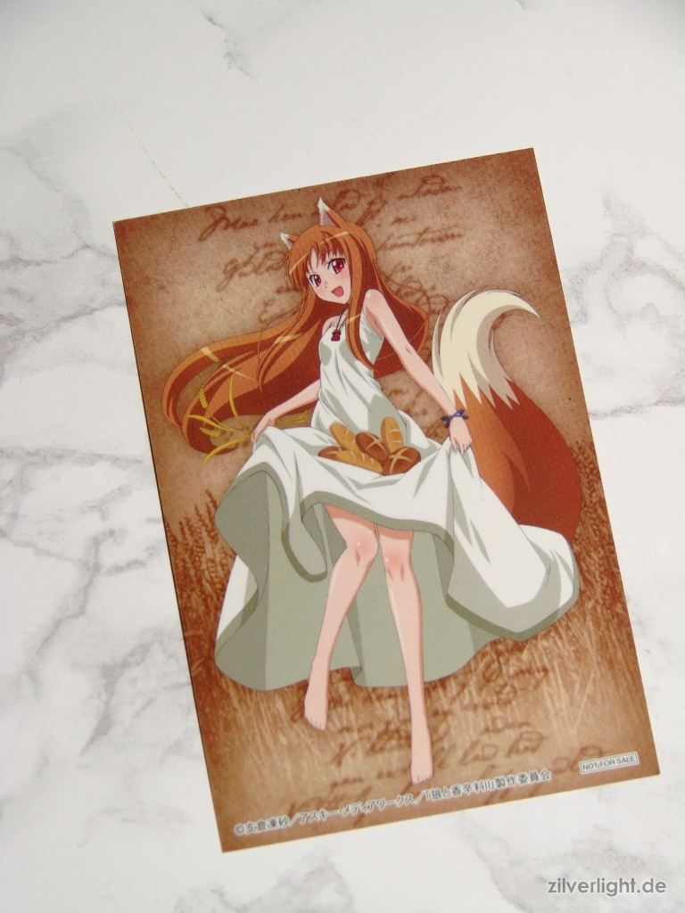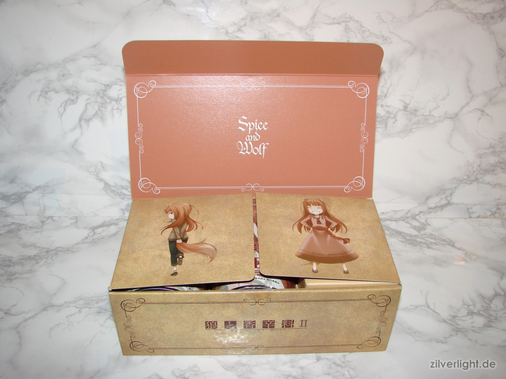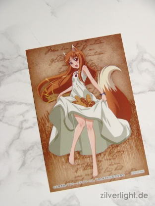 Öffnen wir die Verpackung strahlen uns erst einmal zwei nette Illustrationen von Holo an, welche beide im Manga Design gehalten sind.