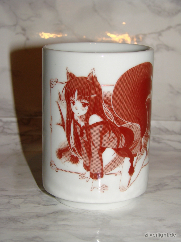 Die Teetasse ist qualitativ sehr schön und zeigt ein verlockendes Motiv von Holo. Die Qualität erinnert mich hierbei stark an Cospa, auch wenn ich an dieser Stelle nicht weiß ob die Tasse eventuell tatsächlich von ihnen produziert wurde, denn soweit wurden dazu nirgends Informationen genannt.
