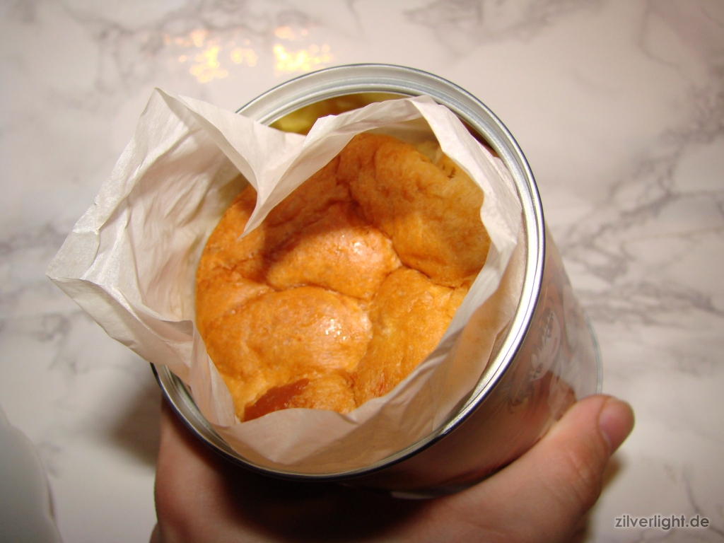 Und so sieht das Dosenbrot dann innen aus. Hierbei handelt es sich um die Honig & Zitrone Variante des Brotes. Persönlich habe ich bei diesem Brot einen etwas fremderen Geschmack erwartet, wie bei so manch anderen essbaren Dingen die ich mir aus Japan importiert habe, allerdings schmeckte zumindest diese Geschmacksrichtung recht vertraut. Den Geschmack könnt ihr mit einem typischen Hefezopf vergleichen, vielleicht nicht ganz exakt so, ist diesem aber sehr ähnlich.