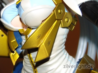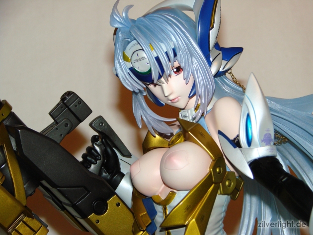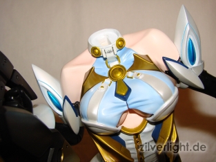 E2046 verwendet immer wieder ihr Magnet-Feature um den Statuen einen gewissen Grad eines Castoff-Features zu gewähren. In diesem Fall lassen sich bei KOS-MOS ihre Brüste freilegen. Die beiden Magnetteile, welche die Brüste verdecken sind hierbei sehr gut angepasst, so dass die Optik nicht unter dieser Funktion durch eventuell zu große Spalten leiden muss.