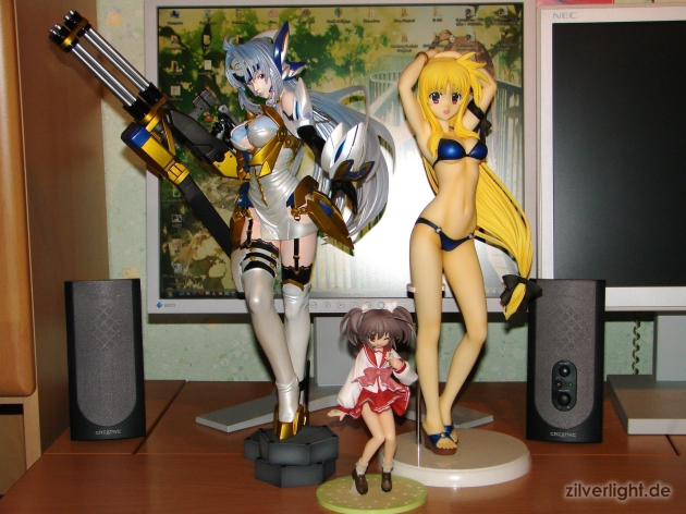 Und zum Schluss noch ein Größenvergleichsbild mit der 1/4 Statue von Fate T. Harlaown und einer 1/8 Statue von Yuzuhara Konomi. Die eigentliche Größe und das Ausmaß dieser Statue dürften hier wohl besser zu Geltung kommen als auf den oberen Bildern bei welchen man keine Größenvergleiche schlussfolgern konnte.
