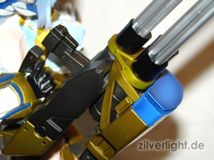 Auf Wunsch kann das Teil vor KOS-MOS Stirn ausgetauscht werden. Hierbei liegt dieses Teil ist geschlossener und geöffneter Varainte mit Visier vor. Die Teile werden hierbei durch Magnete in Position gehalten. Ein wirklich sehr nettes Gimmik bei E2046 Kits, denn so erspart man sich unschöne Halterungen im Kit selbst.