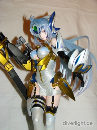 E2046 liefert uns mit dieser 1/4 Statue von KOS-MOS ein fertig bemalte und gebaute Variante des damaligen Resin-Kits von Volks, welches nur auf den Chara Hobby 2009 und Hobby Round 2 Events erworben werden konnte. Zusätzlich bietet E2046 seine kopierte Variante zu einem weitaus attraktiveren Preis an, denn das damalige Resin-Kit von Volks besaß den doppelten Preis dieser fertigen Variante von E2046. Somit also ein sehr guter Deal für Leute die gerne fertige Statuen kaufen, denn so erspart man sich nicht nur Geld für ein Originalkit, sondern muss später auch nicht bangen ob sein teures Kit nachher vom Profi würdig bemalt und bearbeitet wurde wofür man bei einem solch riesigen Kit nochmals einiges an Geld ausgeben darf.