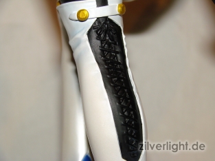 Die Waffe wird durch zwei einfache Steckverbindungen an der Statue befestigt und hält entgegen meiner Erwartungen bombenfest.