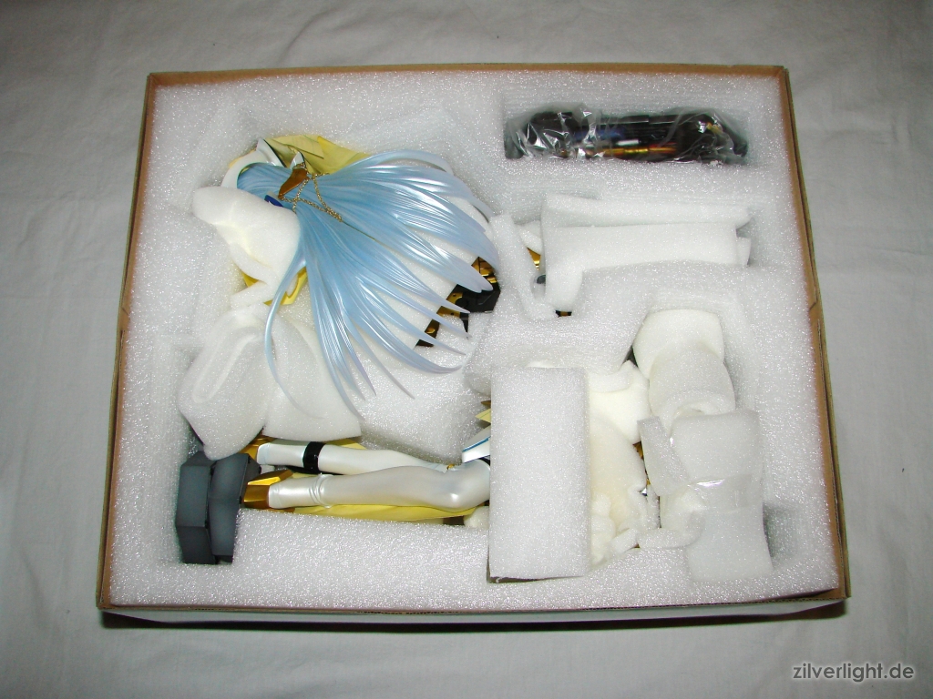 Packen wir KOS-MOS also mal aus. E2046 hat hier wieder eine hervorragende Arbeit bei der sicheren Polsterung der Teile geleistet. Kein einziger Bruch bei den Teilen, dabei besitzt KOS-MOS viele leicht zerbrechliche Teile.