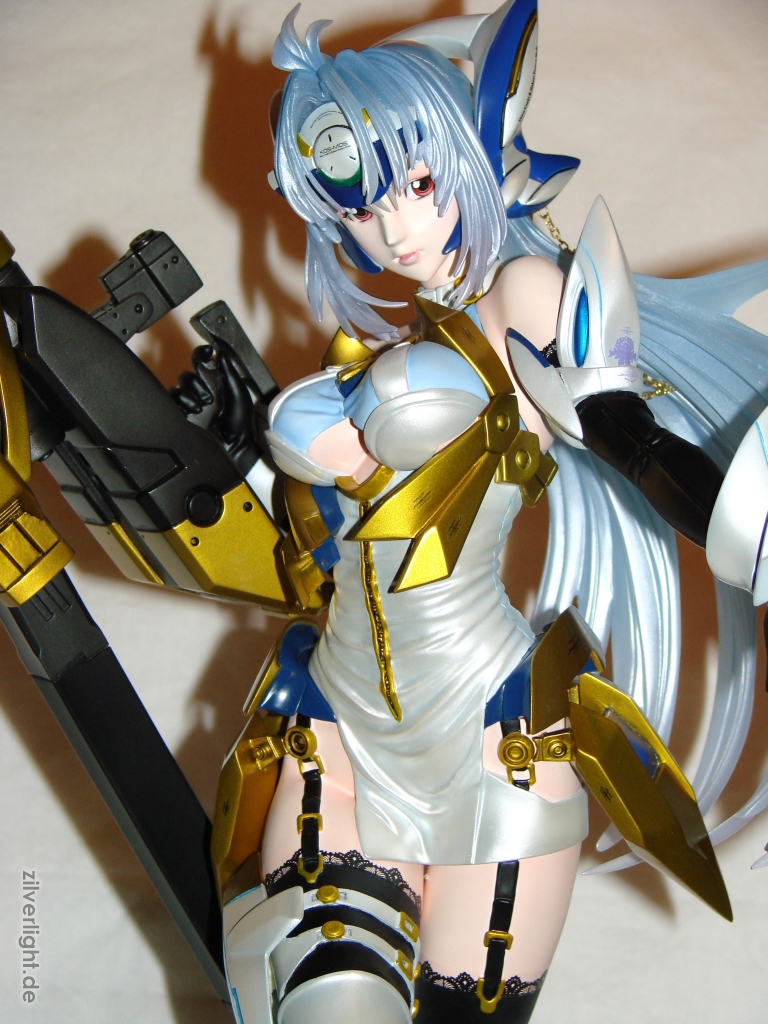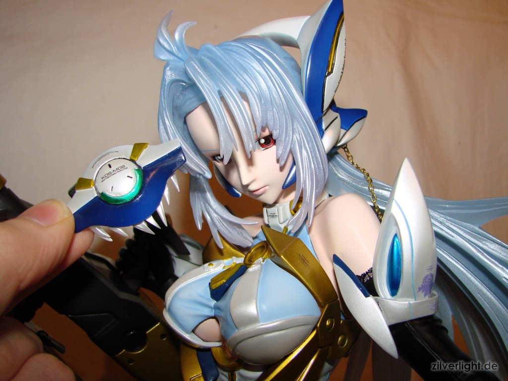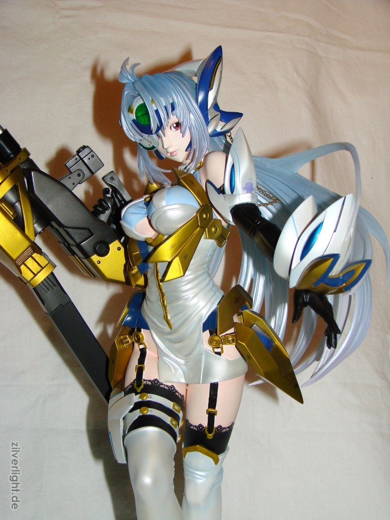 Dieses Kit von KOS-MOS lehnt sich an das Design aus Xenosaga III an in welchem sie ihr v4 Kostüm trägt. Die Umsetzung des Originalkits ist E2046 wirklich herausrragend gelungen. Die Proportionen des originalen Kits, welches von Chorosuke skulptiert wurde, sind gut übernommen worden und zeigen eine wundervoll kurvenreiche weibliche Statur.