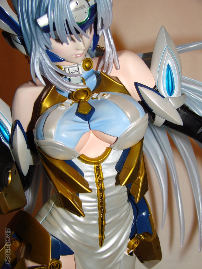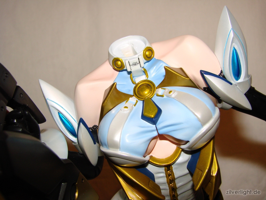 E2046 verwendet immer wieder ihr Magnet-Feature um den Statuen einen gewissen Grad eines Castoff-Features zu gewähren. In diesem Fall lassen sich bei KOS-MOS ihre Brüste freilegen. Die beiden Magnetteile, welche die Brüste verdecken sind hierbei sehr gut angepasst, so dass die Optik nicht unter dieser Funktion durch eventuell zu große Spalten leiden muss.
