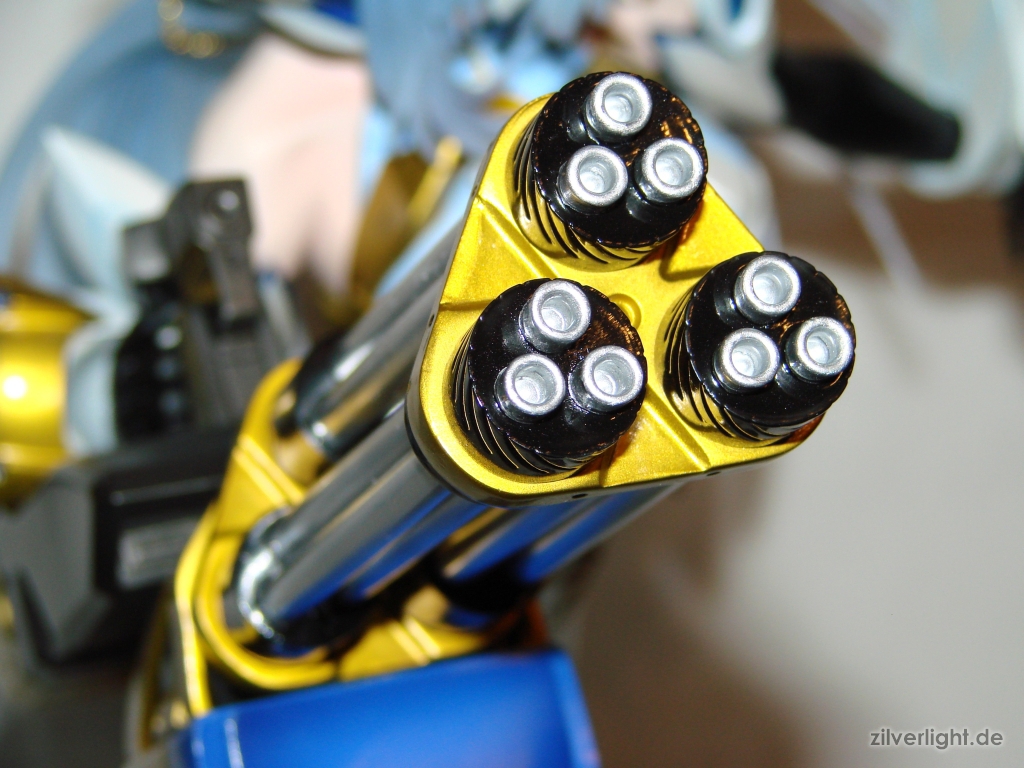 In Anbetracht der Treue zum Orginal eine sicherlich enttäuschende Entscheidung. Selbst wäre es mir wohl lieber gewesen, wenn E2046 ihre Entscheidung zum natürlichen Aussehen der Brust ganz durchgesetzt hätte und diese Linien der Abdeckungsplatten vollkommen verworfen hätte. Allerdings besitze ich ohnehin kein Interesse daran, KOS-MOS jemals mit Castoff-Feature auszustellen.