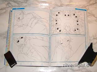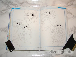 Um wieder etwas sparsam mit der Farbe sein zu können und das Buch trotzdem weiter zu füllen gibt es wie in so vielen Fanbooks Linearts zu den Ingame CGs wie auch so mancher Illustration.