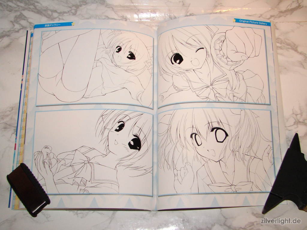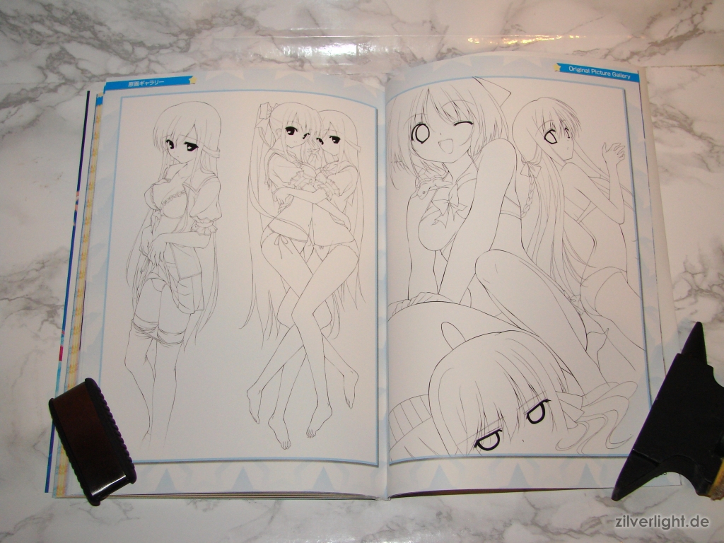 Um wieder etwas sparsam mit der Farbe sein zu können und das Buch trotzdem weiter zu füllen gibt es wie in so vielen Fanbooks Linearts zu den Ingame CGs wie auch so mancher Illustration.