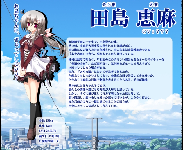 Auch die ersten fünf CGs zu 「11eyes -Resona Forma-」 wurden veröffentlicht und können hier unten betrachtet werden. Hiervon zeigen zwei CGs die neuen Charaktere Ema und Ire.