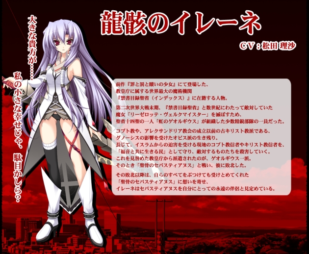 Ire könnte wohl die wahre Gestalt von Invidia in 「11eyes -Resona Forma-」 darstellen. Auch wenn mich der Name Ire viel eher an den lateinischen namen Ira (Wrath) denken lässt.