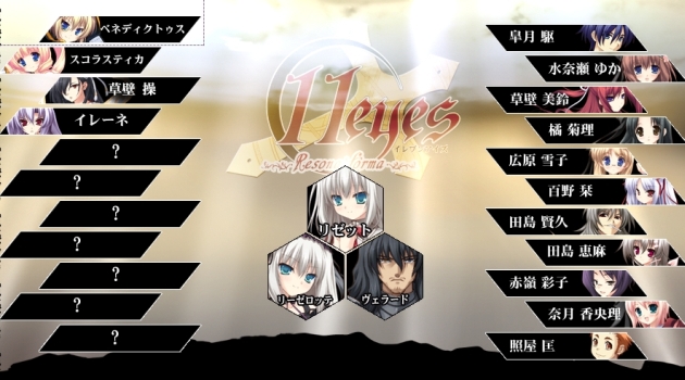 Das Raster von 「11eyes -Resona Forma-」 verspricht mit noch sieben freien Rastern einige weitere Charaktere, welche in dieser Fan Disc integriert werden. Somit wäre mit den vier Charakteren aus der Konsolen- und Handheld-Umsetzung, welche bisher noch nicht gelistet sind, noch Platz für weitere komplett neue Charaktere. Werden wir gar sämtliche kuro kishi in ihrer wahren Form zu Gesicht bekommen?