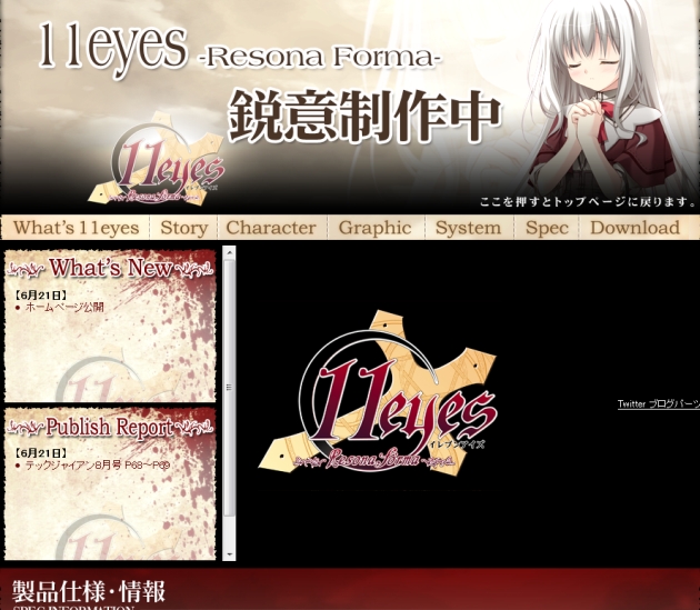 Die Seite zu 「11eyes -Resona Forma-」 ging nach der Ankündigung schnell online und zeigt erste Informationen über die für Herbst 2010 geplannte Veröffentlichung dieser Fan Disc.