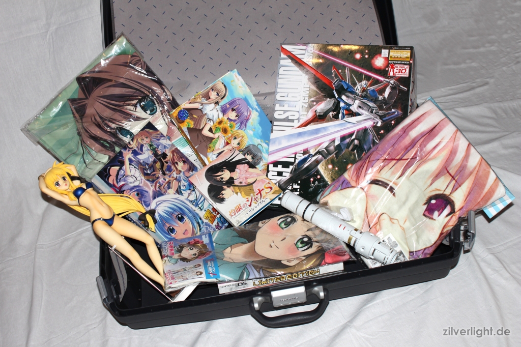 Übermäßiges Angebot an bishoujo Kram, check. Material für nächtliche Aktivitäten, check. Gundams, check. Gundam Beam Saber um Service-Personal zu nerven, check. Wirklich nicht sehr einfach immer wieder seinen Koffer zu packen und dabei nie etwas zu vergessen, wenn man in den Urlaub geht. Dieses Mal habe ich aber vorgesorgt und mir einen deutlichen Plan zum Packen gemacht. So, ich denke soweit habe ich alles um 2 Wochen außerhalb meiner kleinen Höhle überleben zu können. Aber verdammt, wie bekomme ich jetzt da noch meinen HD-TV und meinen PC rein?