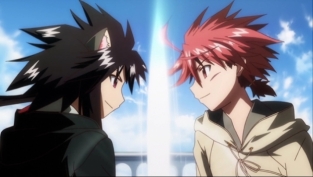 Kommen wir zu ein paar Screencaps aus der dritten OAD Folge der Mou Hitotsu no Sekai-Reihe. Die Folge kann man dieses Mal in zwei Stil-Abschnitte teilen, hierbei nimmt der Kampf zwischen Negi und Kagetarou einen etwas andere Stilrichtung an.