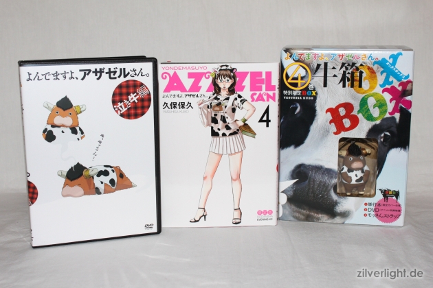 Zwar ist soweit Azazel der Star des Manga, allerdings kommen in der beigefügten DVD die Dinge durch Moloch erst so richtig ins Rollen. Wobei sich das DVD Cover so zumindest etwas an das Manga Cover anlehnt, welches ebenfalls recht schlicht gehalten ist. Somit gibt es passend dazu die niedliche Ausgabe des kleinen Moloch.