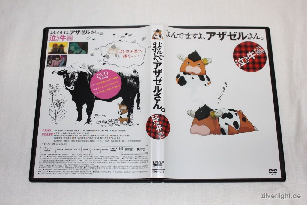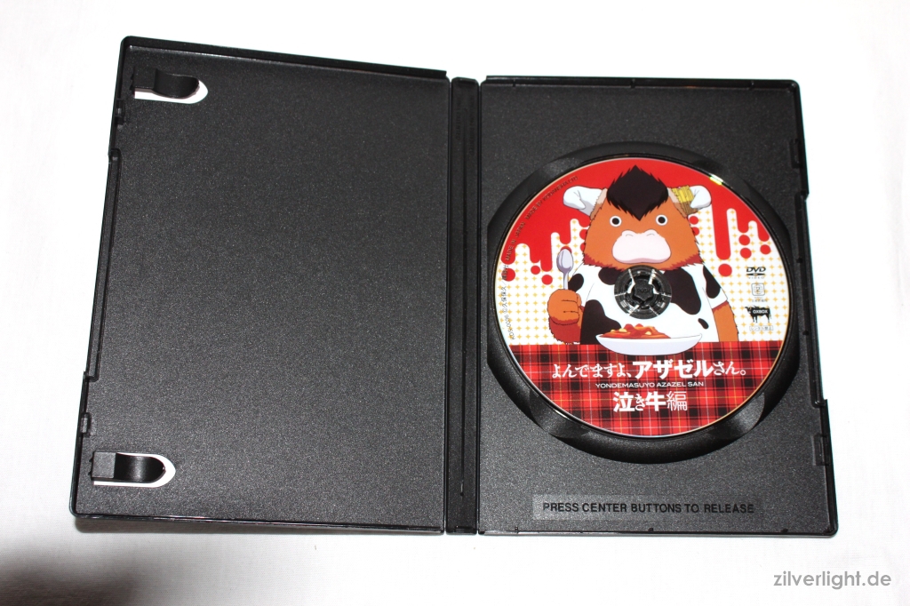 Zwar ist soweit Azazel der Star des Manga, allerdings kommen in der beigefügten DVD die Dinge durch Moloch erst so richtig ins Rollen. Wobei sich das DVD Cover so zumindest etwas an das Manga Cover anlehnt, welches ebenfalls recht schlicht gehalten ist. Somit gibt es passend dazu die niedliche Ausgabe des kleinen Moloch.
