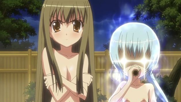Da möchte Raika nur nett sein und Ibukis Rücken waschen und dann erwischt er wieder mal die falsche Seite. Allerdings liegt das Problem vielmehr darin, dass Raika nicht bemerkt, dass es sich um Ibukis Vorderseite handelt. Flatchest ftw! ^^”