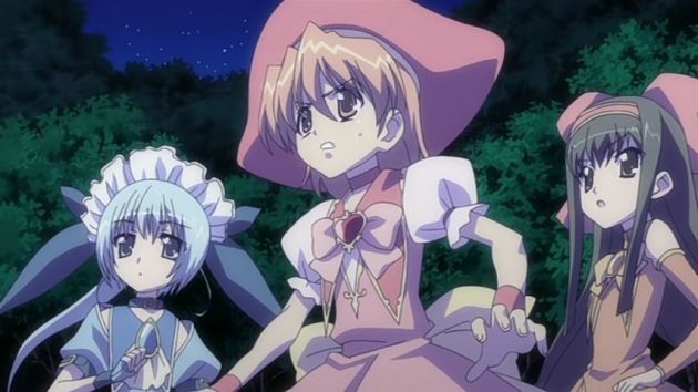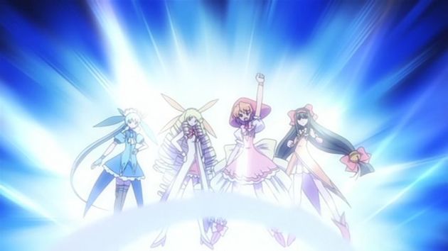 Und kurz vor dem Kuss kommt es wie schon vorherzusehen zu einer abrupten Unterbrechung. Doch was wäre eine einzige Mahou Shoujo Extrafolge, ohne eine Verwandlung? Exakt, keinesfalls komplett. Daher hört unsere Gruppe genau zu diesem Zeitpunkt alarmierende Geräusche. Etwa die böse Gegenfraktion an Mahou Shoujo?