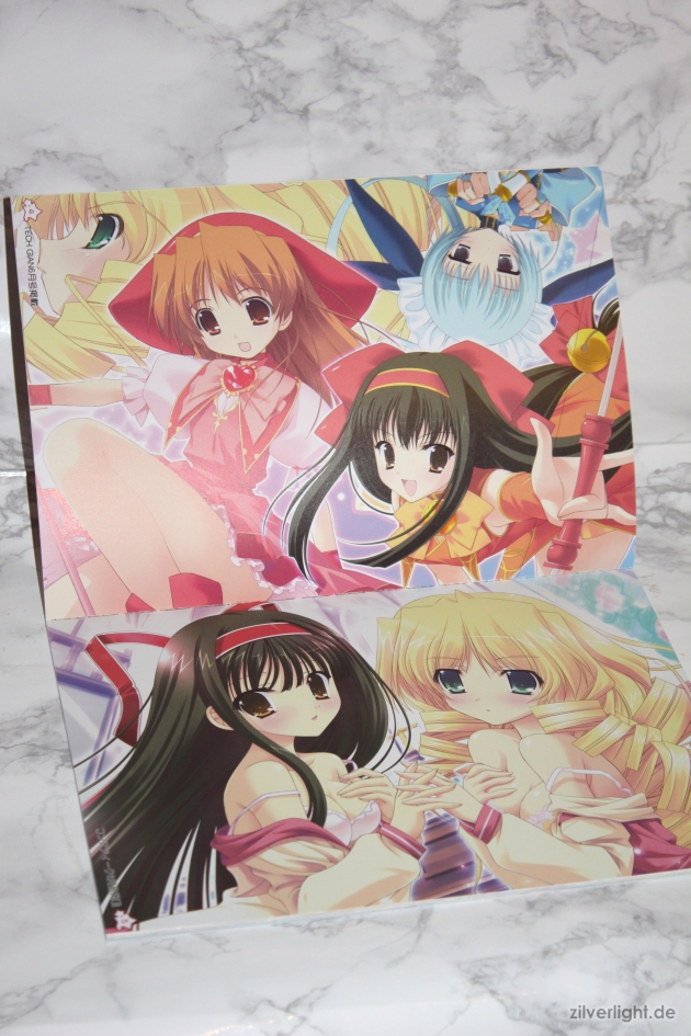 Das Prism☆Magical Artbook enthält wirklich sehr schöne Illustrationen auf insgesamt 30 Seiten. Im Gegensatz zu solch vielen Artbooks, welche als Extra bei Visual Novels beiliegen, besitzt dieses sogar mal nicht nur Illustrationen, die man aus Werbemaßnahmen oder der Visual Novel Website bereits kennt, sondern auch einige Neue. Dies erfreut mich dann immer sehr.