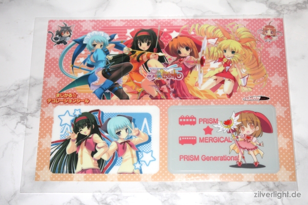 Insgesamt 7 kleine Shitajiki mit den Hauptshoujos des Visual Novels. Alle wirklich sehr schick, allerdings die vier Mahou Shoujos ganz klar in der Favoritenrolle.