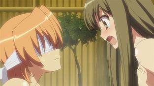 Da möchte Raika nur nett sein und Ibukis Rücken waschen und dann erwischt er wieder mal die falsche Seite. Allerdings liegt das Problem vielmehr darin, dass Raika nicht bemerkt, dass es sich um Ibukis Vorderseite handelt. Flatchest ftw! ^^”