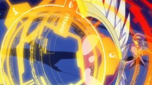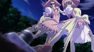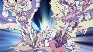 Und kurz vor dem Kuss kommt es wie schon vorherzusehen zu einer abrupten Unterbrechung. Doch was wäre eine einzige Mahou Shoujo Extrafolge, ohne eine Verwandlung? Exakt, keinesfalls komplett. Daher hört unsere Gruppe genau zu diesem Zeitpunkt alarmierende Geräusche. Etwa die böse Gegenfraktion an Mahou Shoujo?