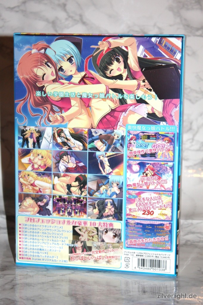 Bei dieser hier vorgestellten Version handelt es sich um das Professional Paket, welches soweit die höchste limitierte Edition war, sofern man wirklich nur den Prism☆Magical Visual Novel haben wollte. Das Ultimate Paket enthält darüberhinaus noch vorangegangene Werke aus dem Hause Pajamas Soft.