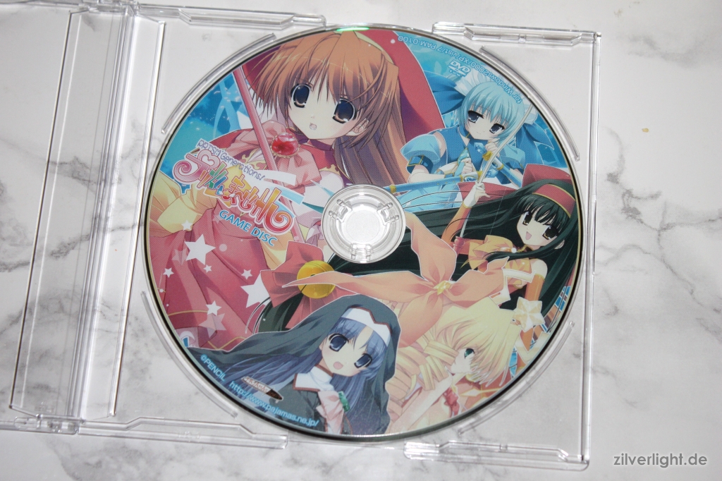 Die Game Disc ist im typischen Stil picture-labeled und zeigt vier der shoujos aus dem VN.
