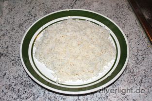 Bevor wir uns um das Curry kümmern, müssen wir selbstredend auch den Reis hierzu kochen. Da das Curry recht fix fertig ist, beschäftigen wir uns also zuerst einmal mit dem Reis.