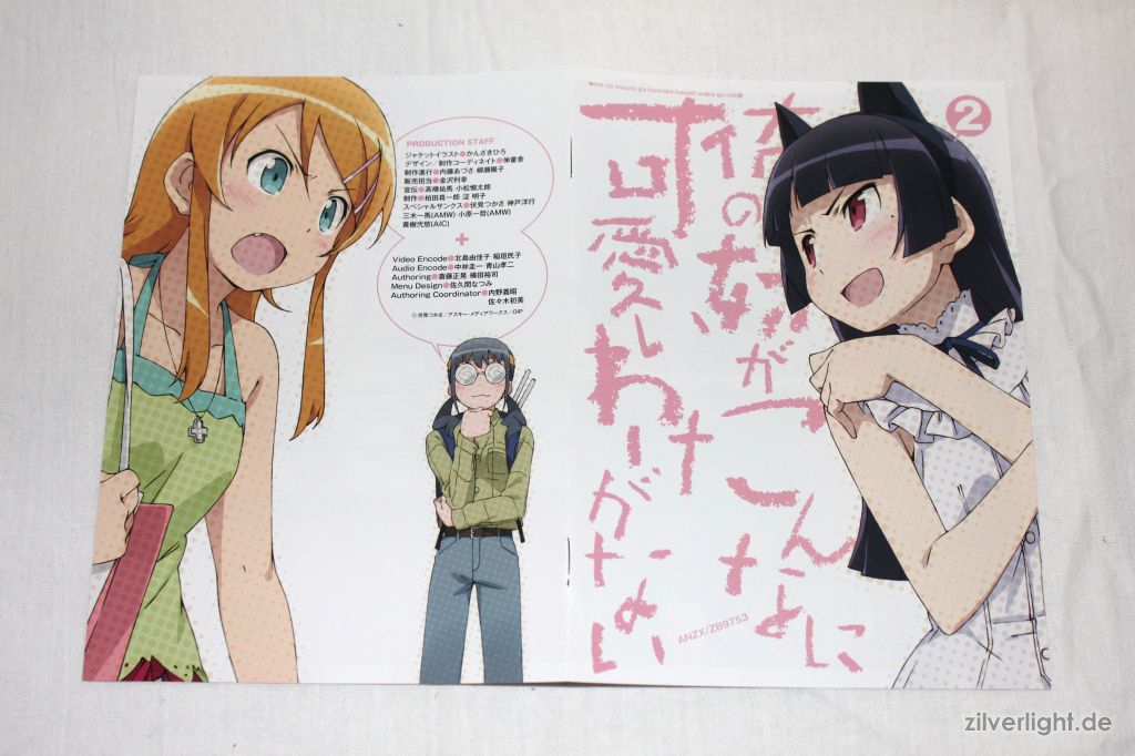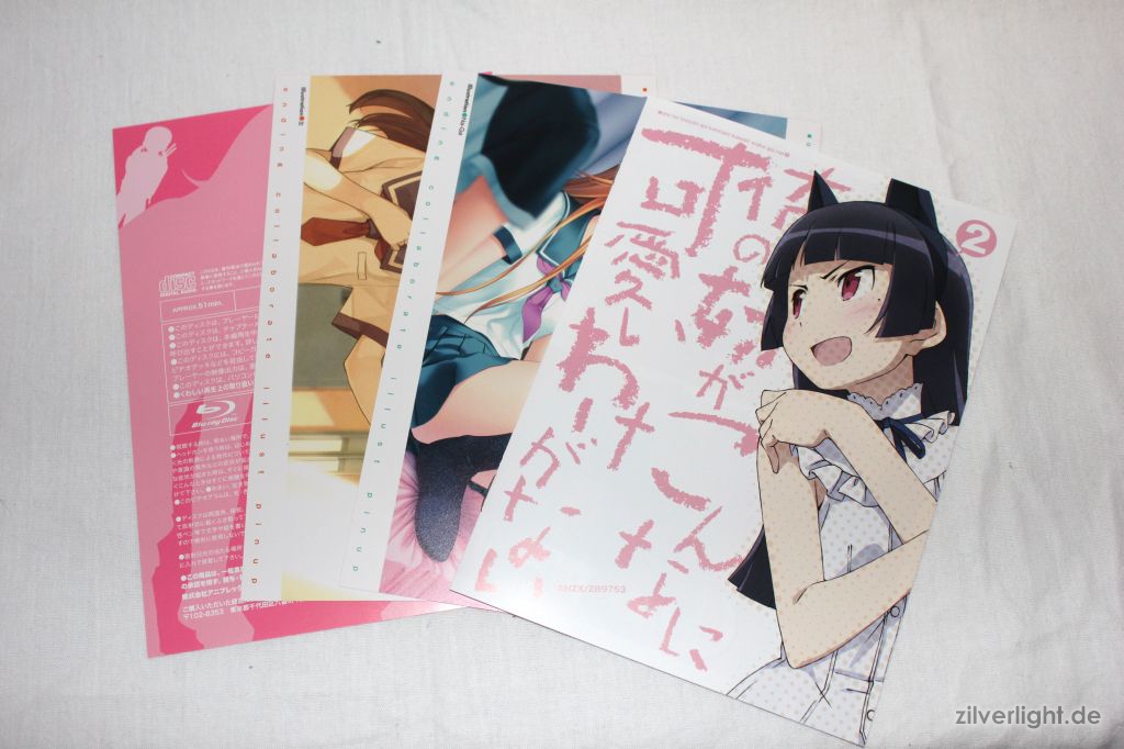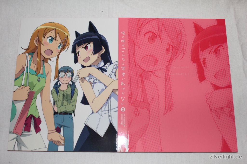 Die limitierte Ausgabe von OreImo Volume 2 enthält neben der BD und den Illustration Cards mit den Illustrationen verschiedener Künstler (dieses Mal u.a. Na-Ga, Stichwort Key) eine CD-Single mit den Ending Songs der Folgen 3 und 4. Einen kleinen Light Novel, wie bei Volume 1, gibt es ab Volume 2 leider nicht mehr dazu.