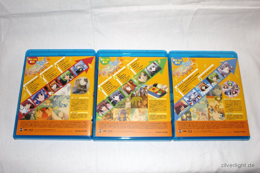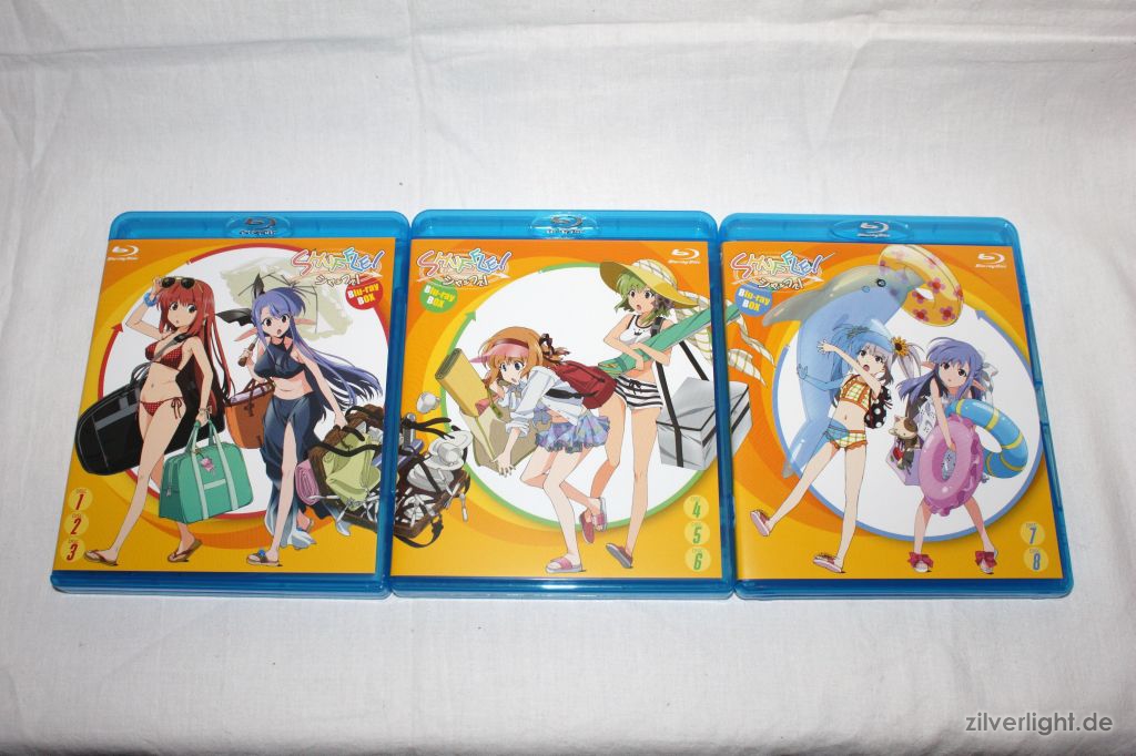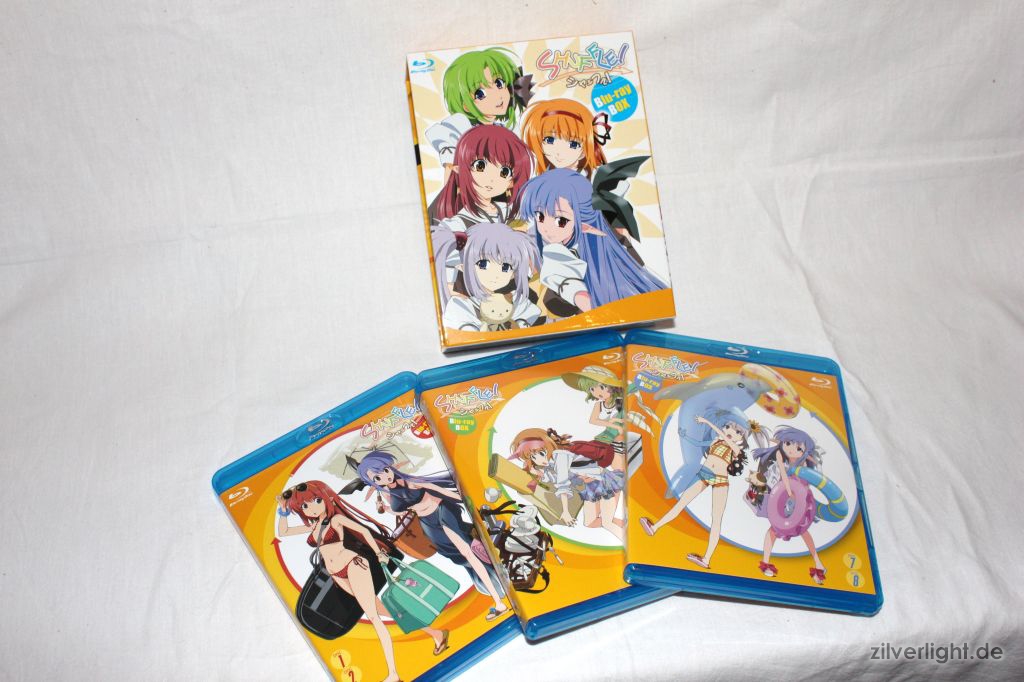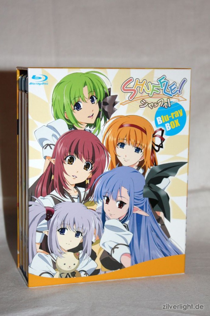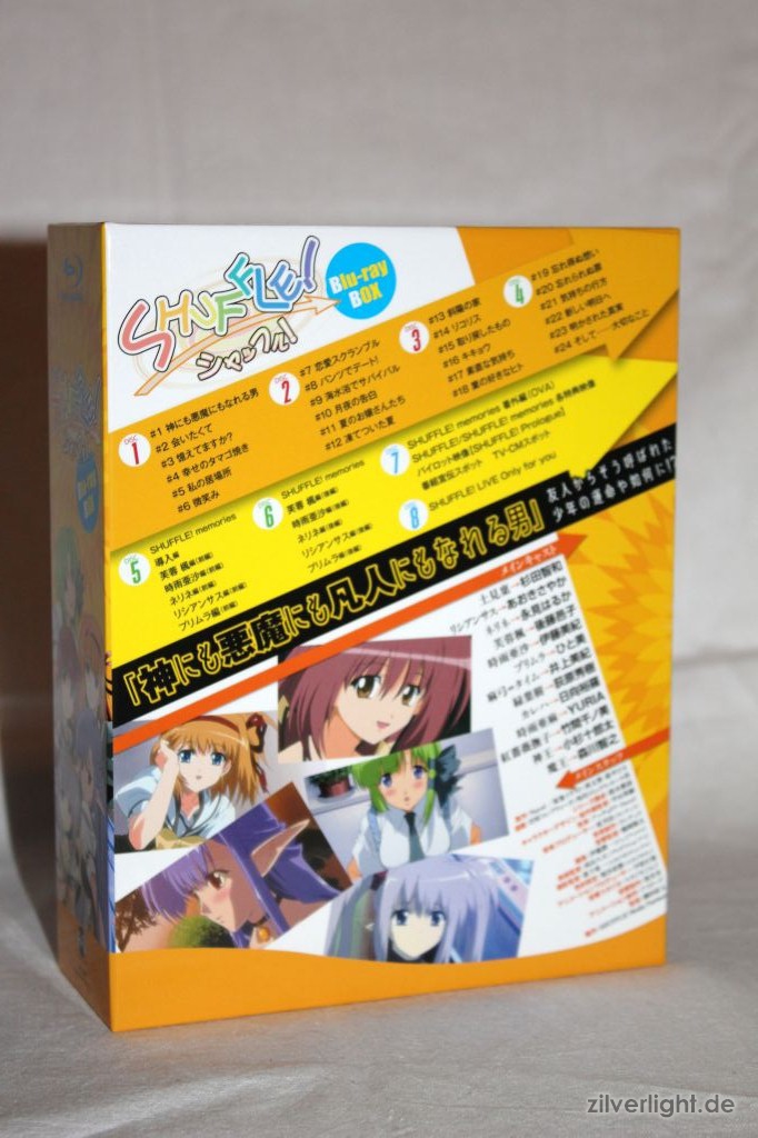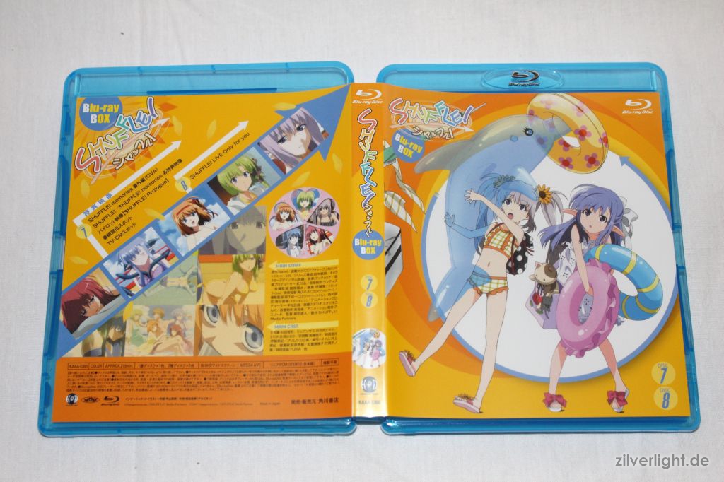 SHUFFLE! zählt zu meinen persönlichen Lieblingsserien, welche ich mir immer wieder anschauen kann. Umso erfreulicher, dass die Serie als Blu-ray Komplettbox angekündigt wurde. Nachdem ich damals, noch mitten zu DVD-Zeiten, die japanischen DVDs nie fertig gesammelt habe und die Serie bislang nur auf US-DVD komplett besitze, war eine Anschaffung in einem hochauflösenden Format ein sicherer Kauf für mich. Die Box besteht aus insgesamt acht Blu-rays und enthält neben der originalen SHUFFLE! Serie, auch die Memories Serie, zusätzlich dem Prolog und dem Event “Live only for you!”. Eine ordentliche Box also und das für einen wirklich, für japanische Verhältnisse, absoluten Superpreis.