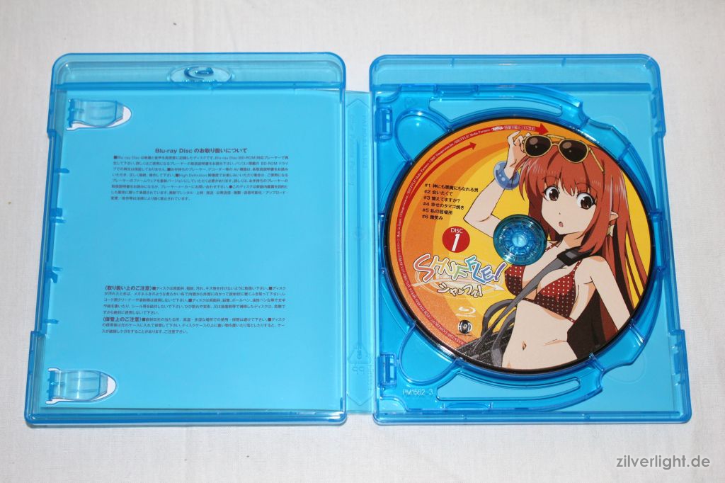 Alle acht Blu-rays kommen in drei dickeren BD-Cases daher. Das BD-Case 1 enthält die ersten drei BDs mit den Folgen 1-18 von SHUFFLE!.