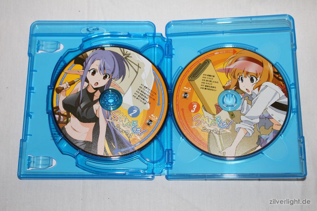 Das zweite BD-Case beinhaltet ebenfalls drei BDs. Dabei enthält die erste BD die restlichen SHUFFLE! Folgen, die anderen beiden BDs enthalten den Anfang von SHUFFLE! Memories.