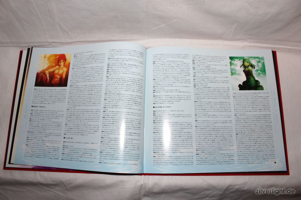 Die Visual Chronicle bietet viele Illustrationen, welche man vorallem von den DVD-Cover oder Poster kennen dürfte, welche zusätzlich von einem Kommentar von Takeuchi oder Sudou Tomonori begleitet werden.