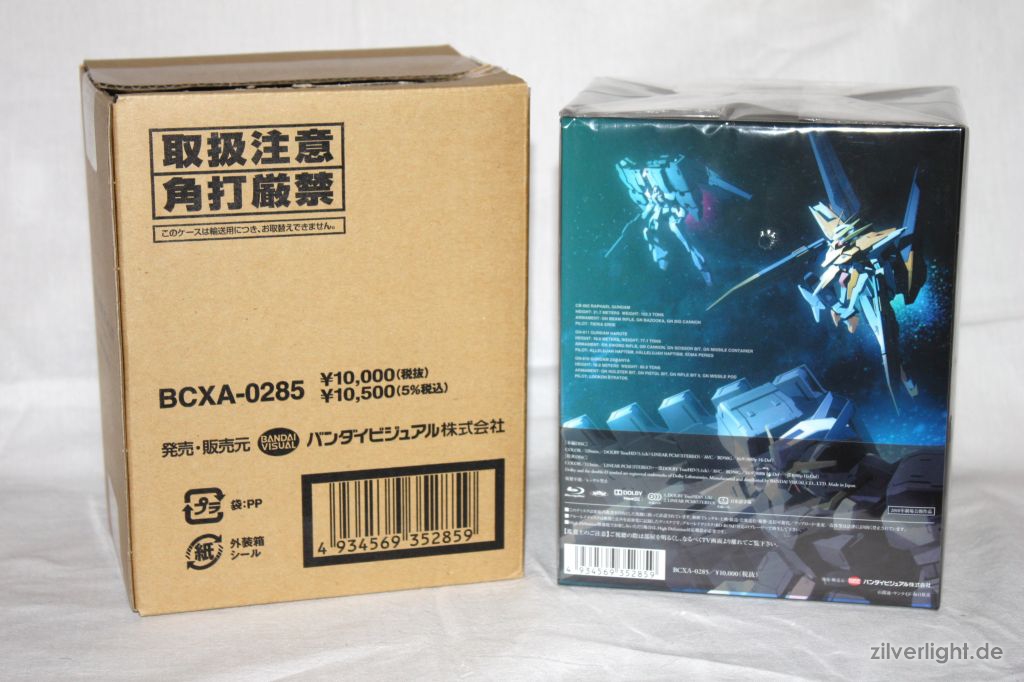 Für Sammler und Anhänger der Serie/Franchises gab es hierbei mal wieder einen Grund mehr zum Kauf. Erschienen ist der Film in einer Standard-Edition, wie auch einer so genannten Complete Edition. Die Complete Edition umfasste hierbei einen ganzen Sammelschuber, welcher die zusätzlichen Inhalte fasste. Der Preis der Complete Edition schlug daher mit stattlichen 10.500円 zu Buche, wohingegen die Standard-Edition nur 7.350円 kostete. Die Complete Edition wird in einem separaten Karton mit Aufschrift geliefert, welches durch die massive Fracht des Sammelschubers, sicherlich von Vorteil ist. Ausgepackt, erhält man freie Sicht auf den Sammelschuber, welcher mit den Designs der Haupt Gundams versehen ist.