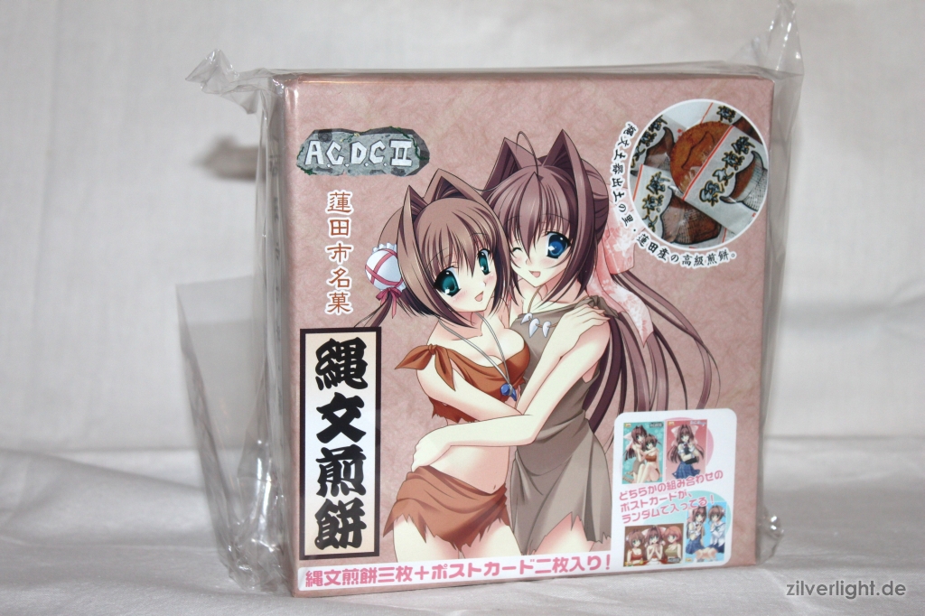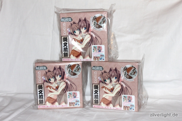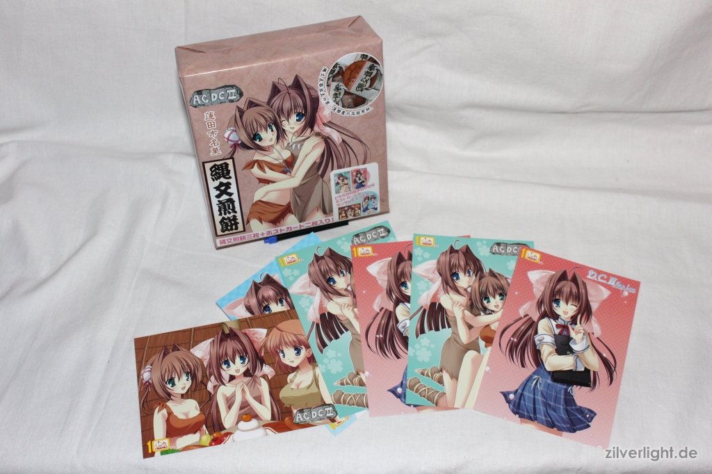 Jeder Pack enthält drei Cracker und zwei Postkarten mit drei der durchaus ansprechenden bishoujo aus D.C.II (Otome, Yume und Koko).