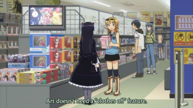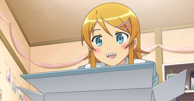 Dem Gesichtausdruck zu schließen muss Kirino gerade in Akiba sein. Ja, es kann gar nicht anders sein, denn Kyousuke kennt diesen Gesichtsausdruck allerhöchstens von daheim, wenn er Kirino das neueste Eroge vom Mitternachtsverkauf mitbringt.